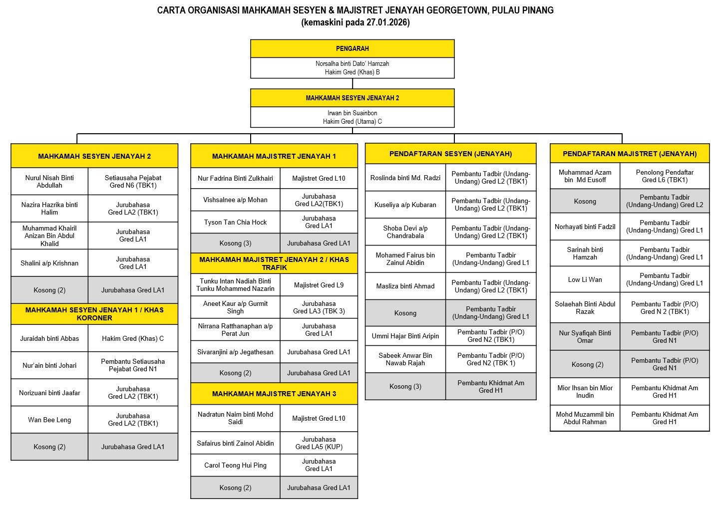 - Bertanggung jawab kepada unit statistic Mahkamah Sesyen dan Majistret Pulau Pinang.