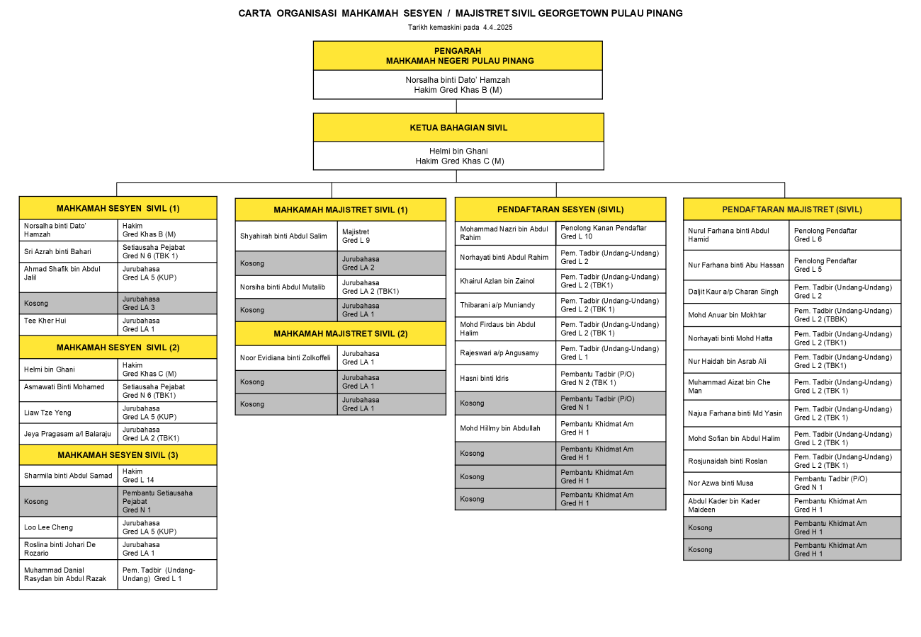 - Menjalankan tugas-tugas Pengarah bagi Mahkamah Pulau Pinang.
